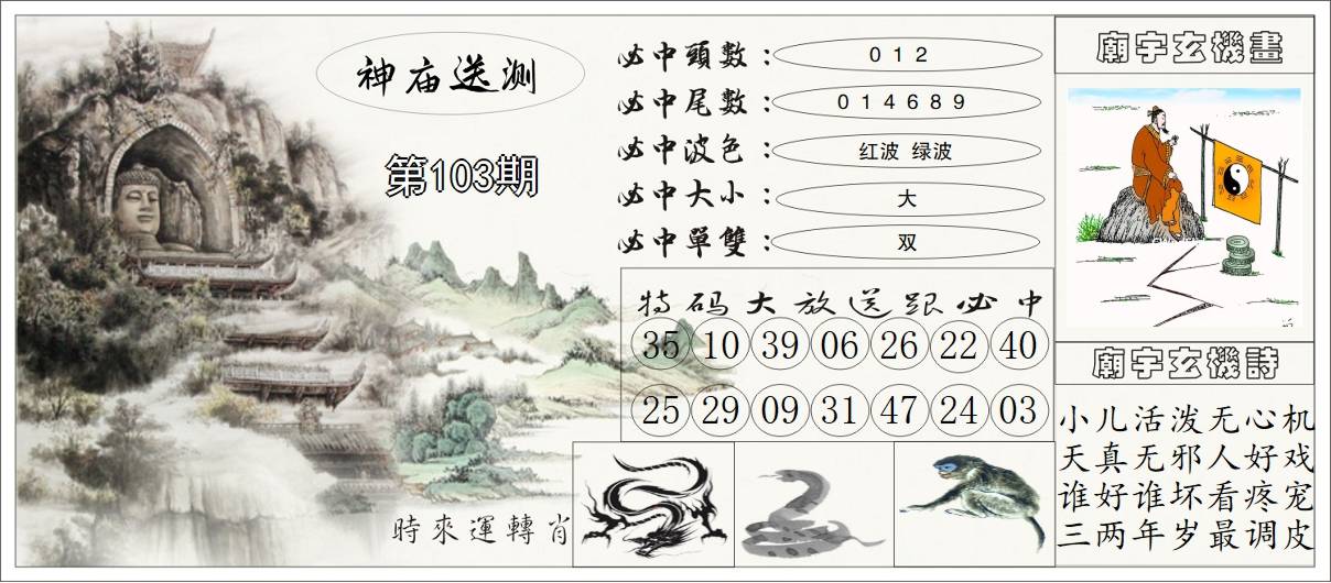 100期稳中④肖: 蛇马龙 |